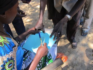 • Administering the registration and distribution process on the actual day of the distribution– the head of the household ‘signs’ that they have received the correct quantity of food – in some of the locations these signatures take the form of a fingerprint because sadly, many of the beneficiaries are still illiterate